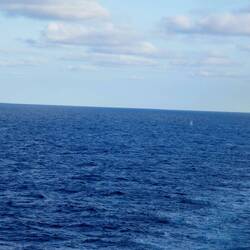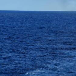 We didn’t drag ourselves out of our cabin until 7.15pm & then kicked ourselves that we were missing out on a beautiful sunny evening in the middle of the Bay of Biscay. Almost straight away we bumped into the very same Orca Watcher, so I took the opportunity to ask if we had missed anything. I was relieved that we hadn’t, but he said that we may see whales in about an hour’s time, when the sea gets shallower. We sat back with a glass of wine and waited. He was wrong……….it was an hour and 20 minutes later.
