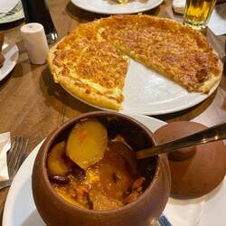 I chose the Pork Goulash with potatoes, beans and carrots. Lee had a beef stew and Priscilla had Khinkali, a dumpling that you pick up, bite into and suck out the broth. Lee and I were also able to have one each. This was accompanied by a large pizza sized bread covered in melted cheese and several beers. It was all very delicious and dirt cheap.