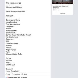 We headed straight out to the venue, Huxley’s Neue Welt, for the last gig of our NMA Magic Bus European tour. We had a couple of beers en route, then arrived at the venue with about 15 minutes to spare. Despite being a sell out and Germany having a reputation for quite physical gigs, after about 3 songs I headed to the front to join most of the rest of our group. Before long I was roped into holding Jack standing up on several different people’s shoulders and Stu who was sitting on people’s shoulders. It was yet another great gig - they never disappoint.