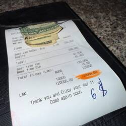 When we ordered the bill we were informed that it was buy 3 beers get 2 beers free, so they brought out a fifth beer for us to take away. Our bill was just $6 US dollars. An absolute bargain.