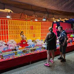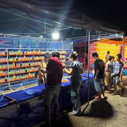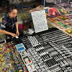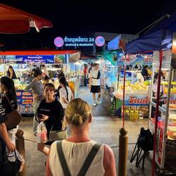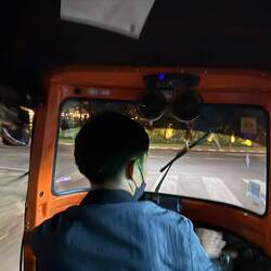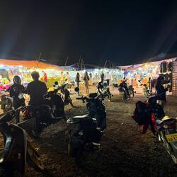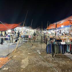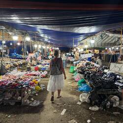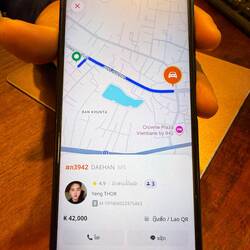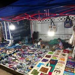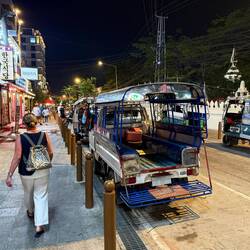 After our 3rd shower of the day, we tested our recent whisky purchase which was remarkably palatable, then went down to reception to order a Tuk-Tuk (Kok Kok Move). Our friendly receptionist showed me the Kok Kok Move booking and asked me to photo it to confirm the driver and price, being Yeng THOR with a fare of just 42 Kip (about £1.45). THOR picked us up in his orange electric Kok Kok Move and dropped us off at the Evening Market.