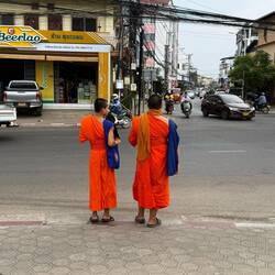 Young Buddhist monks live on the hill and it felt strange to walk past their huts with the orange robes hanging out to dry. At the top sits the 20 metre high Wat Chomsi stupa and Phousi Temple. It also afforded an excellent, albeit hazy 360 degree view of the whole city.