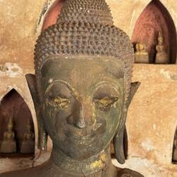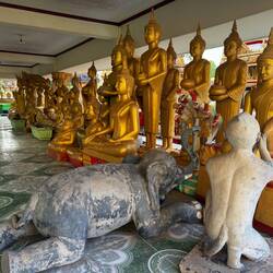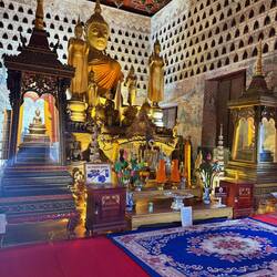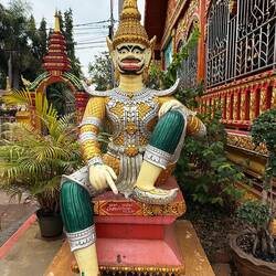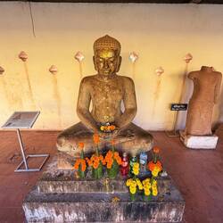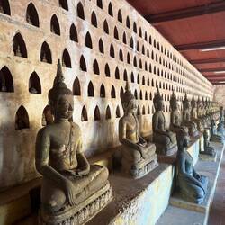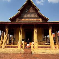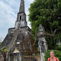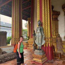Our next stop was Haw Pha Keo, which was once the king’s own personal Buddha temple, but is now a museum of art and antiquities. It cost us another £1 each and Jackie wore a long wrap around skirt provided by the museum. Again it was mainly lots more ancient Buddhas and not particularly interesting.