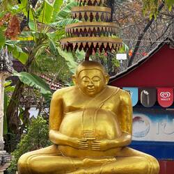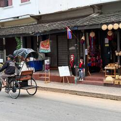 The tasting flight sounded right up our street and we vowed to return that evening when it was open. We then walked along the river front road until we reached the evening market which was already starting to stir into action. We made our way past numerous temples (Wats) to Setthathilat Road described as the city’s most scenic thoroughfare with it’s shady tall trees.