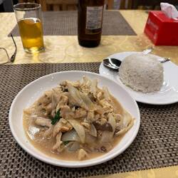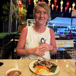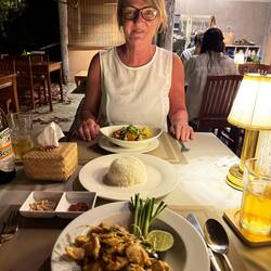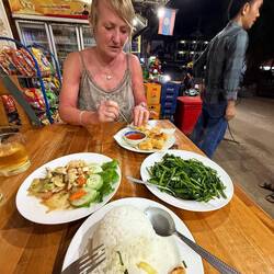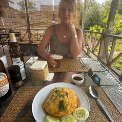 We settled on another riverside restaurant which sold beer. I ordered a fried chicken dish with girolle mushrooms and coconut milk, whilst Jackie ordered a Pad Thai chicken. Both meals were lovely and Jackie voted hers the best Pad Thai on this trip.