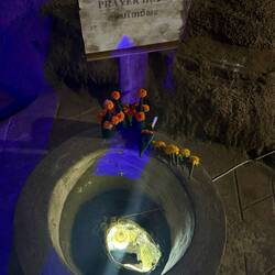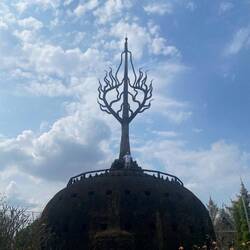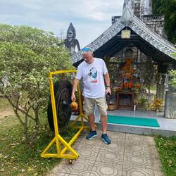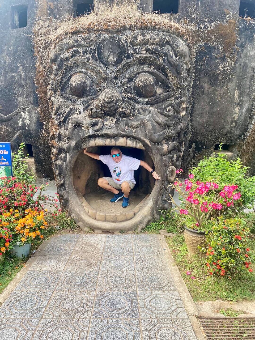 One concrete structure was a massive ball with a mouth as an entrance and a pointy tree thing on top. I stupidly entered the tight entrance and climbed up the ever increasingly narrow and steep steps before crawling out almost upside down out of a tiny entrance at the top. It was akin to being in the Chi Chi Tunnels in Vietnam and definitely not designed for a 5’11” tall, 14 stone something, hunk of a man in his 60’s and slightly arthritic. All for the sake of a photo opportunity!!