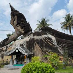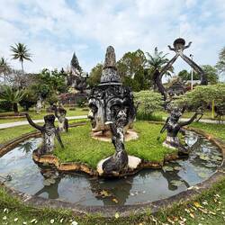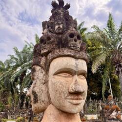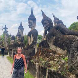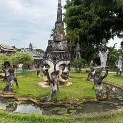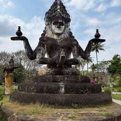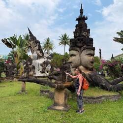 We eventually arrived at Buddha Park sometime during the early afternoon. We paid our 60,000 Kip (£2) and commenced our tour of the park of 200+ concrete sculptures. It was boiling hot and my phone told me that it had also got too hot, then went all dark so I couldn’t see what I was taking photos of.