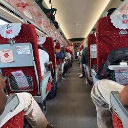 The check-in and boarding procedures were utterly fuss free and efficient. 10-15 minutes before our train arrived the couple of hundred or so of us passengers were ushered out to the platform and instructed to stand behind a yellow line in our allocated carriage area. We were carriage 11, seats 7A&B. The 10.46am train arrived on time and within minutes we were seated and smoothly gathering speed out of the station.