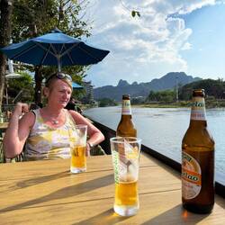 Jackie was in her element and within 5 minutes of our arrival, she was declaring we would be staying at this hotel for the remainder of our trip. Apparently the idea of a balloon ride in Vang Vieng is now history!!