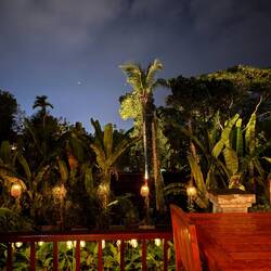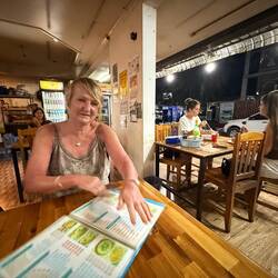 The afternoon was spent lazing in the sun, with one more dip in the lagoon. Jackie kept threatening to get on the zip line, but after one excuse too many, Jackie finally conceded she had lost her bottle. Am I surprised………..No.
