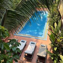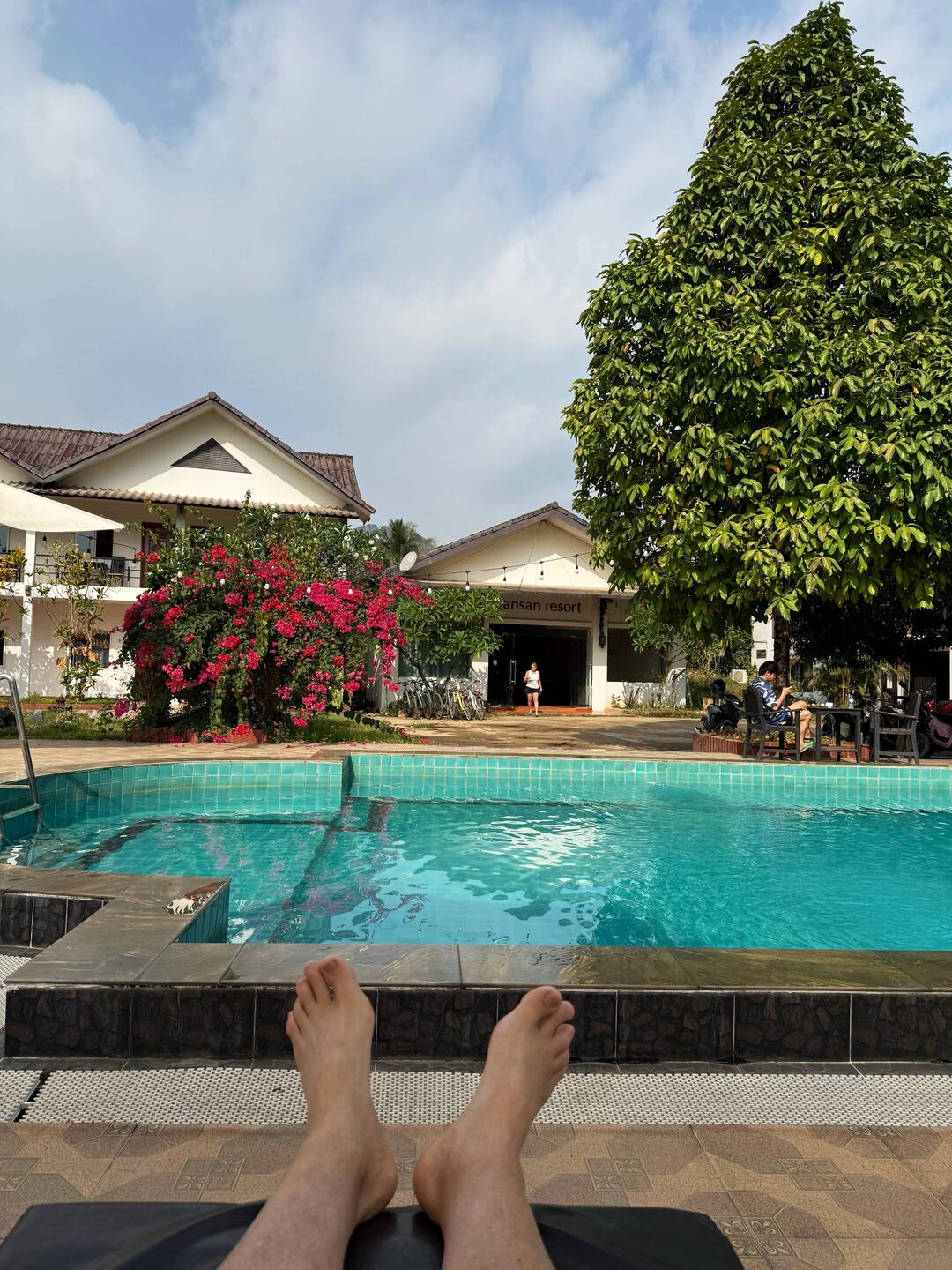After lunch we bought some drinks including a cheap bottle of Vietnamese vodka, then returned to My Dream and sat around what felt like our own private secluded pool. We sunbathed and I tried to read my book, but Jackie was constantly nattering in my ear about extending our stay here, what type of room, what floor, how much would we be prepared to pay, what if this, what if that, etc, etc, etc. I didn’t get much reading done!