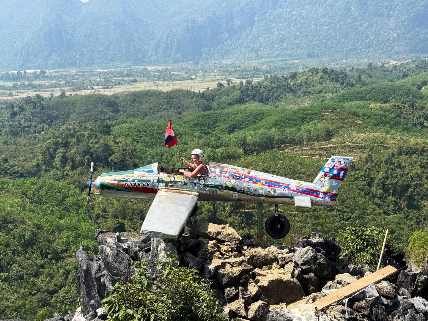 As we were coming into land there were a series of crew tannoy announcements and I heard (or thought I heard) that it was illegal to bring pork products into Laos…….it might’ve been just from certain surrounding countries like Vietnam, China, Cambodia etc. We weren’t taking any chances and tried to force down 4 now slightly warm mini pork pies that Jackie still had in her bag. I managed two, Jackie ate one and the remaining one was stuffed into the seat pocket.