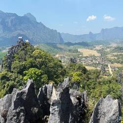 Instead we parked up at Horkham Viewpoint and paid the standard 20,000 Kip entrance fee. This hike was different in as much as we were required to scramble up over rocks and boulders sometimes on all fours. It also felt that we had ascended higher and for longer than the previous day’s viewpoint climb.