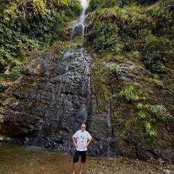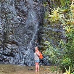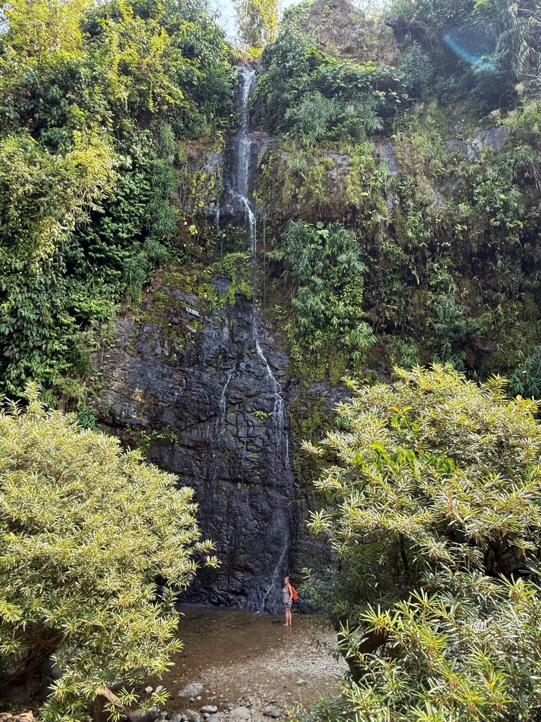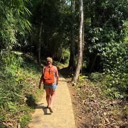 We paid our 30,000 Kip admittance fee, parked up and strolled up the gratefully gently inclined pathway through the forest. It was a very pleasant 600 metre walk to the waterfall. I was scouring the undergrowth and trees with my beady eye, but apart from dozens of different species of fluttering butterflies, I unfortunately didn’t see a single reptile or stick insect, unless you could describe Jackie as a giant stick insect.