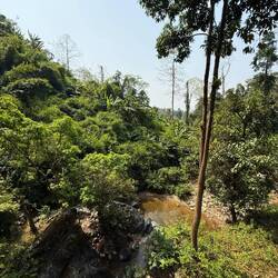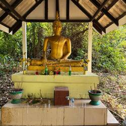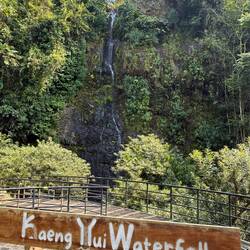 The waterfall itself was not much more than a dribble, which was not particularly surprising considering it has been the dry season for the last couple of months. We took the usual photos, Jackie even got her feet wet, then we walked back down to the scooter. It was a very pleasant experience and so glad that we took the time out to go and visit Kaeng Yui Waterfall.