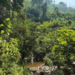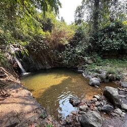 Now we still had the scooter, it gave us to the opportunity to visit Kaeng Yui Waterfall, which was 6km east of Vang Vieng. It is described in my guidebook as ‘a peaceful spot, nestled in the forest among the hills protecting Vang Vieng's eastern flank.
