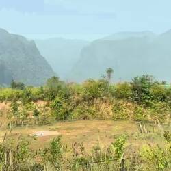 At Vang Vieng train station, it was the same airport-like security check procedure. We had anticipated this and had both placed a half empty can of mosquito spray in each of our rucksacks. Unfortunately they were more efficient (or job’s worths) than at Vientiane. I was forced to hand over my mossie spray and deodorant. Jackie had to surrender 4 aerosols, including mossie spray, dry shampoo and 2 suntan lotions. We effectively gave away about £40’s worth of sprays. Great.