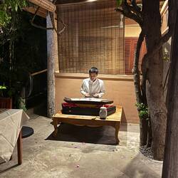 At 7pm we returned to reception to catch the free hotel shuttle bus into the old town. We had time to read the restaurant menu which looked exceptional, reasonably priced and the atmosphere was made by a musician playing his guzheng.