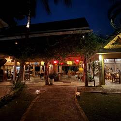 We walked west along the river front, where we stumbled upon a number of open air riverside restaurants that we deemed worthy of a visit on another night. We then flagged down a Kok Kok Move, negotiated a price of 70,000 Kip who took us home.