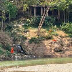On the way down the hill we stopped at the Temple of Buddha’s Footprint and the Imprint of Buddha’s Foot, before walking along the bank of the Nam Khan. We stopped at a little shack overlooking the river for a pitstop beer.