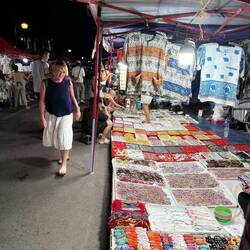 At 7pm, we caught the shuttle bus into town. Jackie had expressed a desire for French cuisine that evening. We fought our way along Sisavangvong Road, the location of Luang Prabang’s night market. It was exceptionally busy, so we didn’t stop other than to take a few photos. We will return, hopefully on a quieter night, because there were a few mementos on sale that took our fancy.