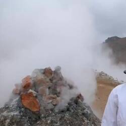 Having circumnavigated the lake we rejoined Route 1 & very soon chanced upon the alien landscape of Námafjall. At this area, also known as Hverir, we were able to walk around the many smoking fumaroles and boiling mud pots, surrounded by sulphur crystals of different colours. Unfortunately the sulphur gave off a stomach churning smell of rotten egg. After a few photos & a video we were glad to get back in the Duster.