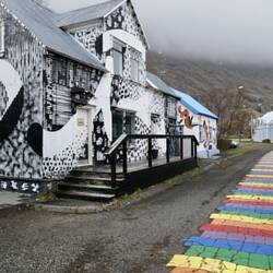 Finally we reached Iceland’s most northerly mainland town of Siglufjordhur, which is just 28 miles from the Arctic Circle. It once was a bustling town employing 10,000 Herring Fish workers, but now it apparently attracts tourists for the hiking & scenery, as well as being the film set for an Icelandic TV murder series, Trapped.