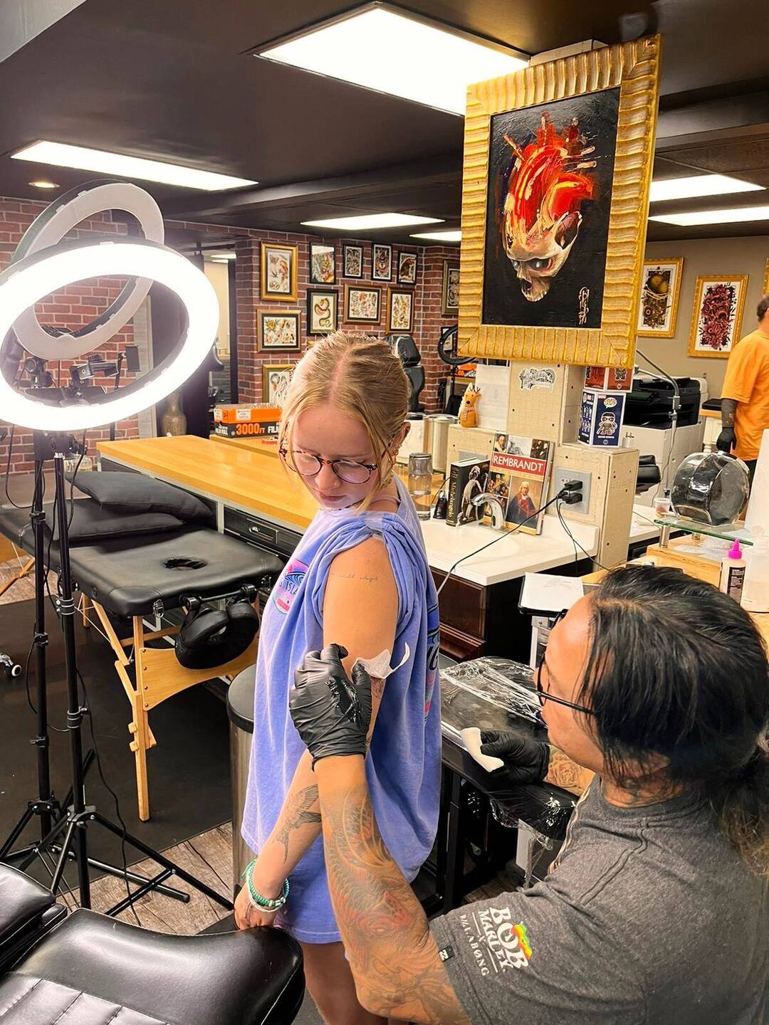 Puis Shade s’est fait un délire et a acheté un pistolet de tatouage, et à tatouer tout ceux qui voulaient dans la cuisine de l’auberge 😂