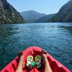 Heute früh haben wir Frühstück in der Campingbar gegessen und haben anschließend mit einem Kajak 6 Stunden ca. 12 km den Fluss Dirn erkundet. Wir waren fast die ganze Zeit allein und konnten dieBaca lagi
