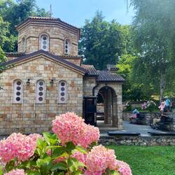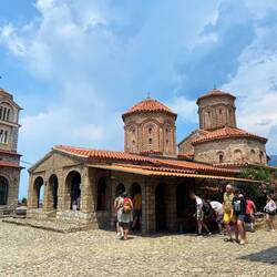 Bevor wir zu unserem Hotel in Korca fuhren, haben wir unser Auto vor der der Nordmazedonischen Grenze abgestellt, sind durch die Grenzkontrollen und haben das wunderschöne St. Naum KlosterBaca lagi