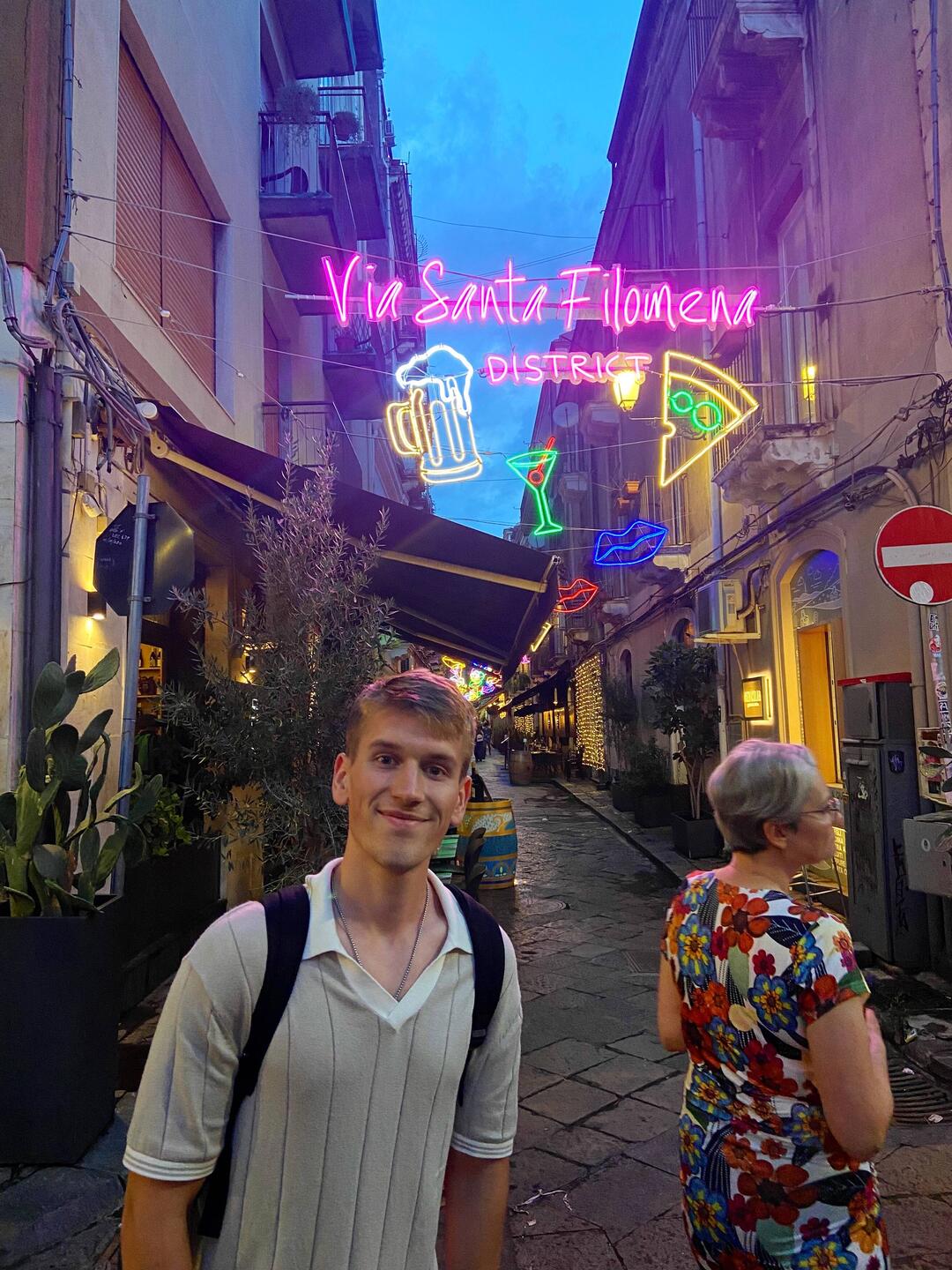 Um Fabians Geburtstag sowie den Urlaub abzuschließen, sind wir abends essen gegangen. Schon beim ersten Catania Besuch ist uns eine wunderschöne Gasse aufgefallen, wo wir uns heute Abend einBaca lagi