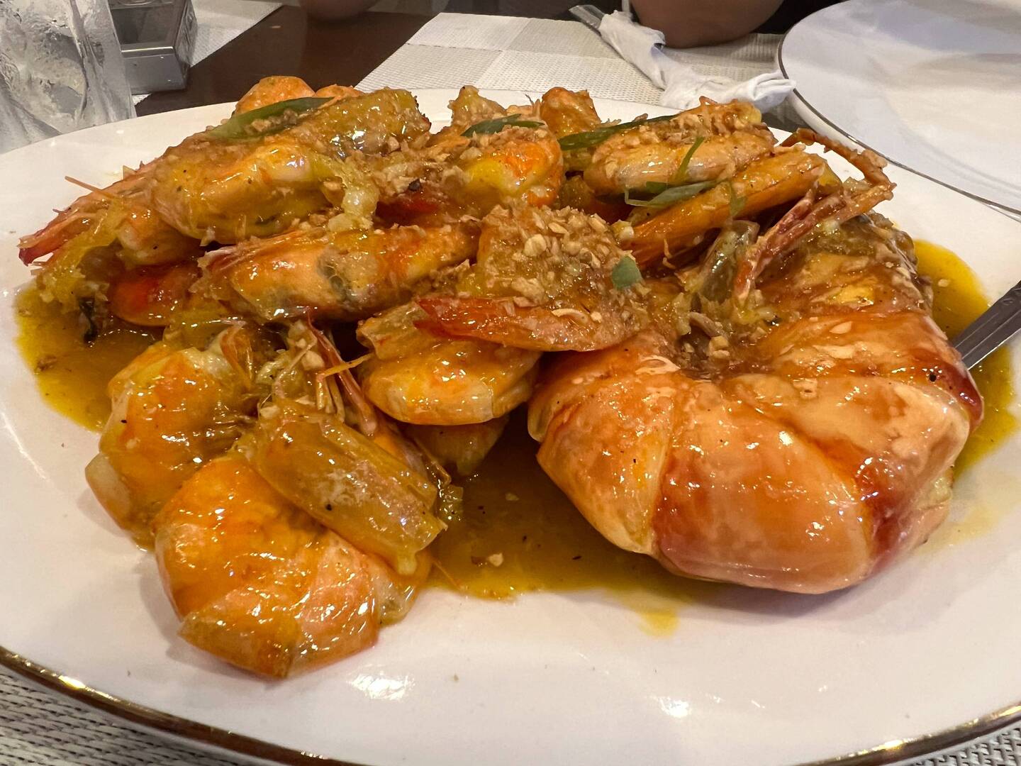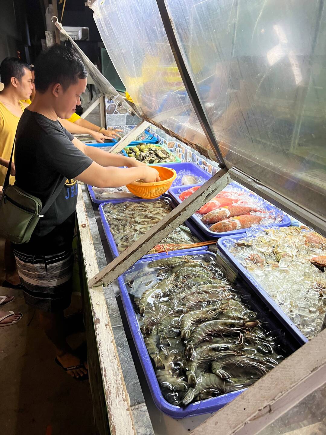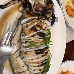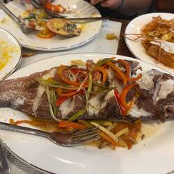 Grouper Fisch / Zackenbarsch (Lapu Lapu), Shrimps Mango Knoblauch, Scallop und Tintenfisch.