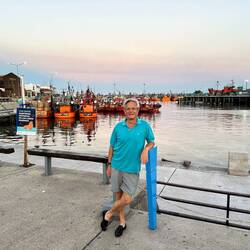 Ich habe Jorge zu einem Nachtessen eingeladen, er revanchiert sich und zeigt mir mit dem Auto den etwas weiter südlich liegenden Fischerhafen, welchen wir anschauen., mit wenigen Verkaufsständen vonLæs mere