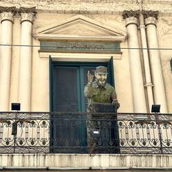 Schaue nochmals, wann die Fähre geht und bummle durch die Stadt, treffe unter anderem auf Fidel Castro, welcher von einem Balkon grüsst. Schaue noch bei der Adresse meiner Sprachschule vorbei. Unscheinbarer Eingang …