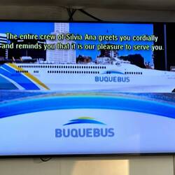 Dann sind wir schon wieder in Colonia am Hafen, umsteigen und durch die Grenzkontrolle, die ist auch schon hier wie auf der anderen Seite. Es haben sich wieder alle zum Einsteigen gedrängelt, im Schiff ist aber mehr als genug Platz, sogar Ich kriege doch noch eine Sitzreihe mit Fensterplatz für mich!