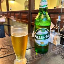 Wir trennen uns nach dem Essen, er hat nur frittierte Kartoffeln gehabt und das Amber Bier probiert, welches ich gestern gehabt habe - das von mir gewählte Golden Lager ist echt nicht so aromatisch, eher wässerig - Alkoholgehalt ist aber gleich. Beide trinken wir noch ein Glas Wein,.
