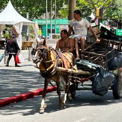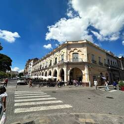 Vom Busbahnhof gehe ich zuerst auf einer Seitenstrasse, wegen des Verkehrs. Muss aber bald bemerken, dass die Hauptstrasse doch wesentlich interessanter ist. Gehe also doch zur Hauptstrasse hoch, weil es da doch mehr zu sehen gibt. Viele prachtvolle Häuser hier. Architektur auch neueren Datums, selten aber gut. Die Jugend- und Kolonialstilhäuser sind schon schön, zeugen vom ehemaligen Reichtum der Stadt.