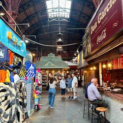Schaue mir noch die Umgebung an, da ist der Mercado del Puerto, bin da schon mal herumgeschlichen, wie ich das Terminal gesucht habe - ohne Wifi nicht immer einfach. Die Hinweisschilder für Fussgänger sind auch nicht gut angebracht, nur wenn man über die Fussgängerzone kommt, sieht man diese, ich kam über die Hauptstrasse am Ufer, sah das Touristenbüro, da war kein Eingang, hatte aber Wifi und hilfsbereite Leute. Die Hinweisschilder, wo es in den Hafen geht, sah ich erst nach hilfreichem Hinweis - na ja, muss noch dazulernen. Ausserdem musste mich ein Wächter durch ein Tor lassen, alle brauchen da Ausweise - der war echt nett!.