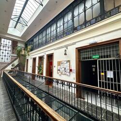 Am Morgen habe ich etwas belegten Hals und Schnupfen, Augen gut. Der eine Hund versucht immer wieder zu mir vorzudringen und hallo zu sagen, an mir zu schnuppern und sich zu reiben. Bisher ging es gut, er gehorcht seiner Meisterin zwar widerwillig, macht aber dann was sie will. Nehme rasch einen Kaffee, für Frühstück reicht die Zeit nicht, sonst bin ich zu spät. Maria gibt mir noch netterweise eine Sube-Karte für Bus und U-Bahn (Sube). Ich gehe zur Schule, mache noch etwas Duolingo auf dem Weg.