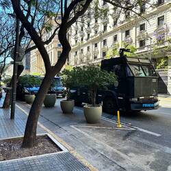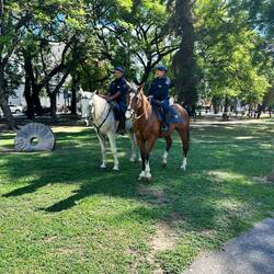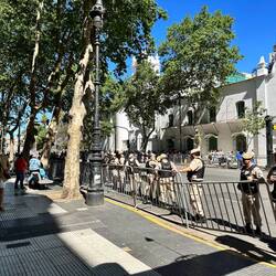 Zurück im Hotel will ich noch einen fahrbaren Untersatz. Wegen Wetterunbilden entscheide ich mich gegen ein Moto (mehr Spass), buche ich noch ein Auto für 4 Tage in Salta. Bei den Distanzen ist es mir echt zu mühsam mit dem Bus und den Fahrplänen. Beim Buchen ist da angeschrieben für 18 bis 64, ändere das auf mein Alter, geht. Leider habe ich meinen internationalen Führerausweis nicht mit, hoffe es geht trotzkleine Polizeieinheit mit Schilden kreuzt den Park, einige habe ich schon gestern gesehen. dem. Unser Führerausweis ist ja mehrsprachig …