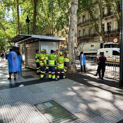 Zuerst fällt mir eine Polizeieinheit mit grossen Schilden auf, welche den Park mit mir unbekanntem Ziel durchqueren. Aber gestern Abend war da eine kleine Demo und die Strassen zum Platz gesperrt.