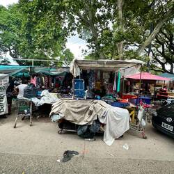 Dann spricht mich eine Frau an, welche gerade in ein Taxi steigen will, ob ich sie erwartet hätte - lächle sie an und sage nein, worauf sie mit dem Taxi entschwindet. Wie immer zu Fuss, nehme ich meine eigene Route, nicht die von Google und auch nicht Booking com, aber Parallel dazu, denke es hat da weniger Verkehr. Suche nach einem markanten Punkt um mir etwa die Hälfte des Weges zu merken, was mir nicht gelingt. Doch genügend Eindrücke habe ich rasch - moderne Parks, und viele Penner am Strassenrand - sammeln anscheinend nachts den noch brauchbaren Abfall und müssen tagsüber schlafen …Read more