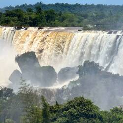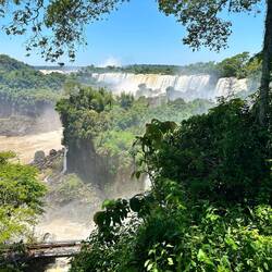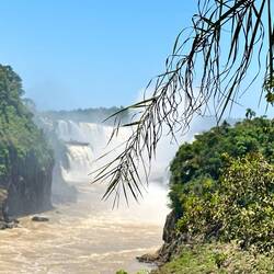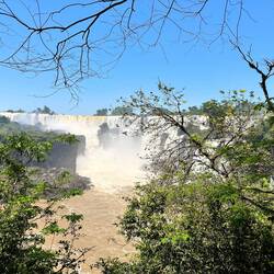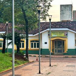 Am Abfahrtstag von Iguazu möchte ich eigentlich im Hotel bleiben, mein Bus geht wieder über Nacht, doch oh weh, die beginnen am Morgen früh schon den Pool zu putzen und schrubben - mit Hochdruckreiniger. In der Arena herrscht Nässe vor. Da ist nicht gut bleiben. Ich frage daher nicht und im Frühstücksraum will ich auch nicht bleiben, der ist tagsüber echt stickig, gehe in die Stadt, setze mich vor ein Museum mit einem kleinen Vorplatz und schreibe da Tagebuch. Zwei drei Personen gehen hinein, nur eine ist eine Touristin. Das Spital im Ort scheint auch nach der im Museum dokumentierten Frau benannt zu sein, „Schwarz“. Allerdings gibt es noch ein zweites, ein „Touristen“-Spital. Pedro will Mittagessen, ich treffe ihn in einem Restaurant, nehme aber nur Kaffee und Wasser! Da ich nicht recht weiss wohin, suche ich mir eine ruhige Ecke im Busterminal. Der Himmel hat auch etwas zugezogen, was mich vorsichtig macht. In der Busstation ist leider viel Lärm, wenn die Busse kommen und gehen, doch … - plötzlich wird es mitten am Nachmittag dunkel und es giesst wie aus Kübeln, nicht einfach kurz, sicher über eine Stunde, es geht dann in leichten Regen über. Ich schreibe und füge Fotos bei. Dazu lerne ich endlich mal die Fotos in Album oder Ordner zu legen. Das hilft mir allerdings für mein Tagebuch noch nicht. Ich brauche einfach zu viel Zeit um die Fotos zu wählen - liegt manchmal auch an der zu grossen Auswahl …
