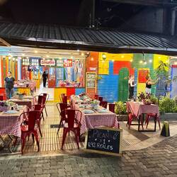 Am Abend wieder mit Pedro Nachtessen - er sucht heute seine Kreditkarte und ist etwas aufgeregt, auch weil er die Reparatur seines Wagens zahlen muss, und er kein Geld hat. Wir fragen bei unseren besuchten Plätzen nach, langsam erinnert er sich, dass er ev. die Karte beim Geldbezug vergessen hat. Das kann er aber jetzt nicht klären. Ich lade ihn also ein, Danach suchen wir wieder ein Plätzchen um noch gemütlich einen Wein zu trinken - im Restaurant Botanico vom Vortag gefällt es uns wieder am Besten, gehen wieder dahin. Die Weine sind alle mit Zimmertemperatur, mit Eiskübel dauert es dann eine gute halbe Stunde bis ein Rotwein trinkbar ist - wir trinken da meist noch 1,5 Liter Wasser.