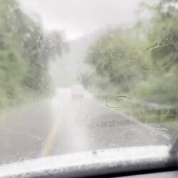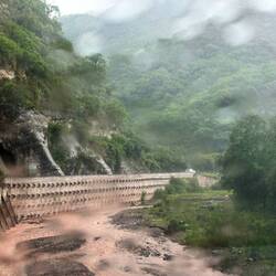 Bis jetzt ist es immer noch trocken, dann windet es plötzlich und es regnet heftig. Ich muss abbiegen nach Cachi. Die Fahrt führt nach kurzer Zeit in den Wald, zuerst ein Schutz, bald tropfen aber die Bäume auch. Bei offenen Strassenstellen muss ich die höchste Stufe der Scheibenwischer einschalten. Auch die Strasse ist teils sehr schlecht, sie besteht teils zur Hälfte aus Löchern. Ich versuche zu Umkurven, doch es sind zu viele. Ich hole jemanden ein und überhole gleich. Ein Familie in einem Kleinwagen. Weiter vorne fahre ich auf einen anderen auf, doch Überholen geht hier nicht, kurve eine halbe Stunde hinter dem her - gleicher Wagen wie ich.