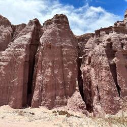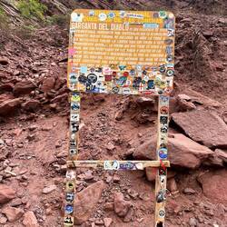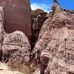 Mache im Schatten eines Felsen nochmal einen Nap, einige Fotos sind noch zu schiessen, unter anderem bei der Quebrada dell Diablo, eine tiefer Einschnitt in Schiefergestein, leider wirkt die Tiefe und Höhe auf der Foto nicht sehr.