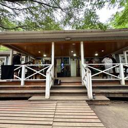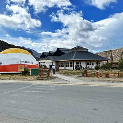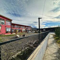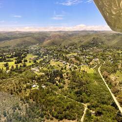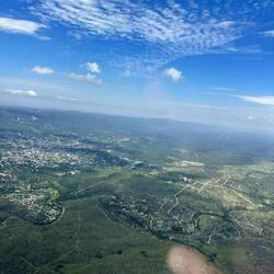 Wir fliegen über La Cumbre, nicht gross, aber die Aussengebiete mit den Einfamilienhäusern/Villen sind weitläufig. Ich finde nahe dem Zentrum sogar mein Hotel - dank dem grünen Pool. Auch das Festivalgelände mit Gebäuden und Weinbergen überfliegen wir. Ich sehe die Hauptstrasse mit der Abzweigung nach La Cumbre. Das Land/Outback ist hügelig und karg, wenige Schotterstrassen, aber man könnte hier auch Wandern meint Pedro. Rasch ist der Rundflug fertig, Wegen Wind muss Pedro 2 mal die Piste anfliegen, es hat uns weg- und hochgeblasen. Saubere Landung, kein Geholper. Sean ist nun dran, ich gehe auf ein Bier im Restaurant mit origineller Dekoration und Bestuhlung.Read more