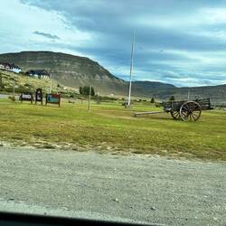 Wir kommen in ein Tal, wo überall Pappeln gepflanzt sind, teils in Doppelreihen, dazwischen noch Weiden. Die Bäume schützen die Felder, es gibt auch Bewässerungsgräben. Der Ort heisst Gobernador Gregores, wo eine Taqsa (Busunternehmen) Örtlichkeit ist. Aber man darf da nicht aussteigen! Dann geht es zu einer Tankstelle, wo man etwas kaufen kann.