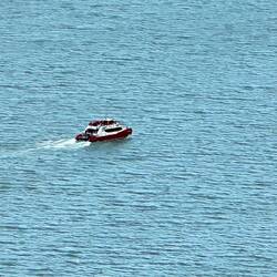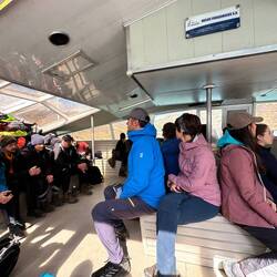 Auf dem Boot müssen zuerst alle unten hinein, eine Reiseführerin gibt Kommentar ab und Vorsichtsmassnahmen bei Kindern und auf Treppen sitzen oder lange da stehen ist nicht erlaubt. Dann stürmt alles aufs Oberdeck.