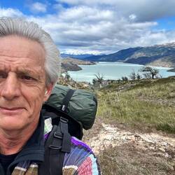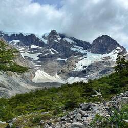 Gehe zurück ins Zelt, es windet sehr heftig, stehe manchmal still. Mache eine Pause und krame mein Zeug hervor, will zum Mirador des Torres. Draussen scheint die Sonne, trotzdem regnet es leicht. Die Berge sind im Grauschleier.